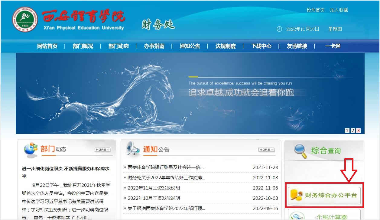 各业务经办人通过西安体育学院财务处官网“财务网上综合服务平台”进入以下页面后,如下图所示: