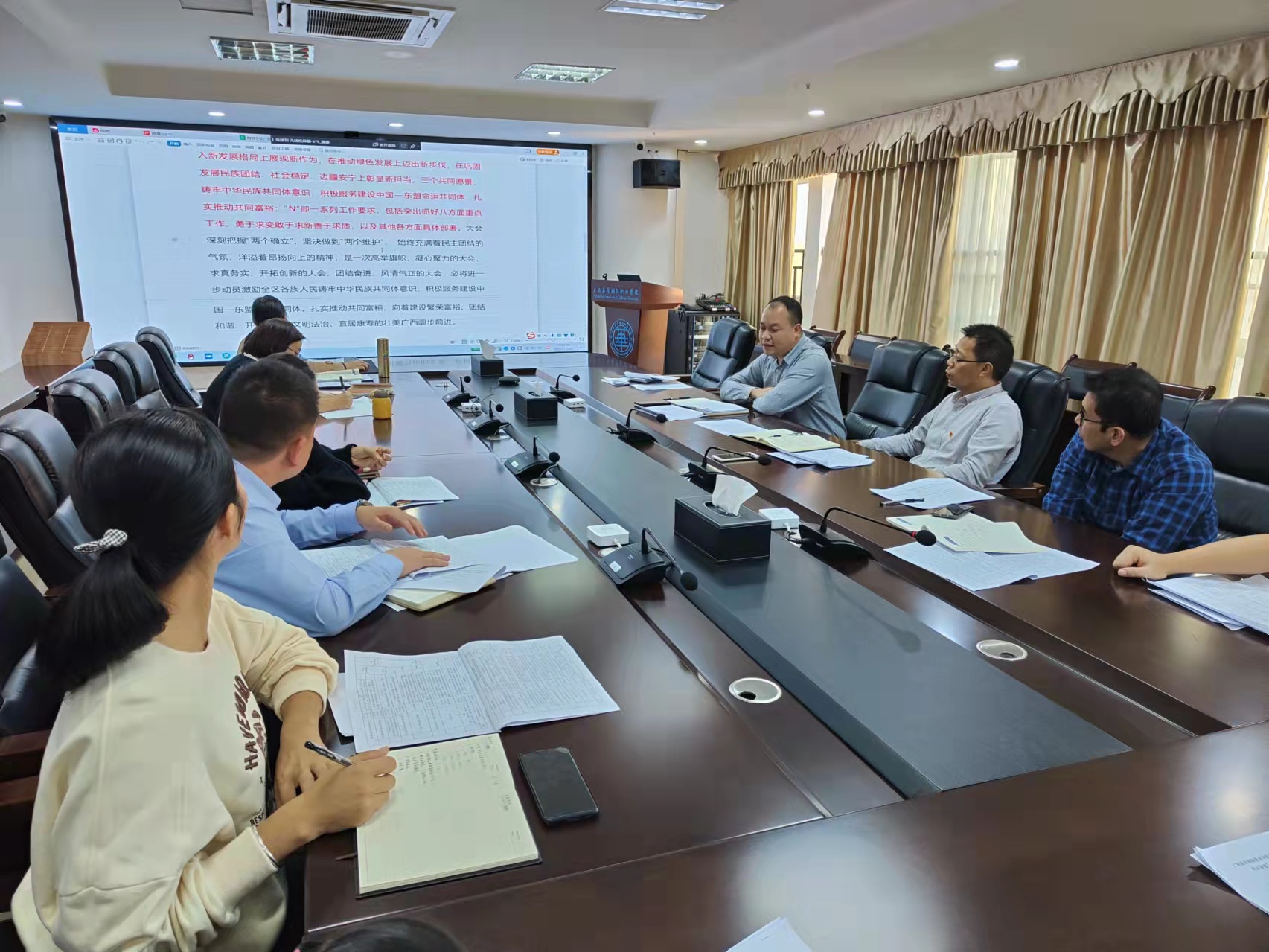 3月10日,学校党委在力行楼7楼会议室集中传达学习2022年全区高校思想政治工作会议精神,各基层党支部书记参加学习。学校党委书记黄家良主持会议并讲话。
