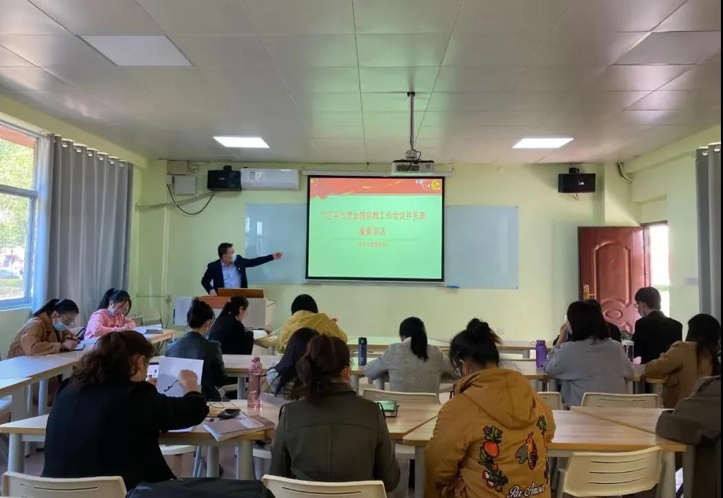 习近平总书记的讲话全面总结党的十八大以来宗教工作的成绩经验,深入分析宗教工作面临的形势任务,系统阐述了新时代宗教工作的新思想新理念新战略,明确了坚持我国宗教中国化方向、做好新时代宗教工作的指导思想、战略目标、重点任务和政策举措,具有很强的政治性、思想性、理论性,是指导新时代宗教工作的纲领性文献,为做好新时代宗教工作指明了前进方向、提供了根本遵循。全体教职工将深刻学习领会习总书记重要讲话精神,准确把握核心要义,把思想和行动统一到新形势下党中央关于宗教工作的方针、政策上来,积极引导宗教与社会主义社会相适应,努力提高开展宗教工作的能力,不断增强跟党走、听党话、感党恩的坚定信念,为实现中华民族伟大复兴的中国梦发挥积极作用。