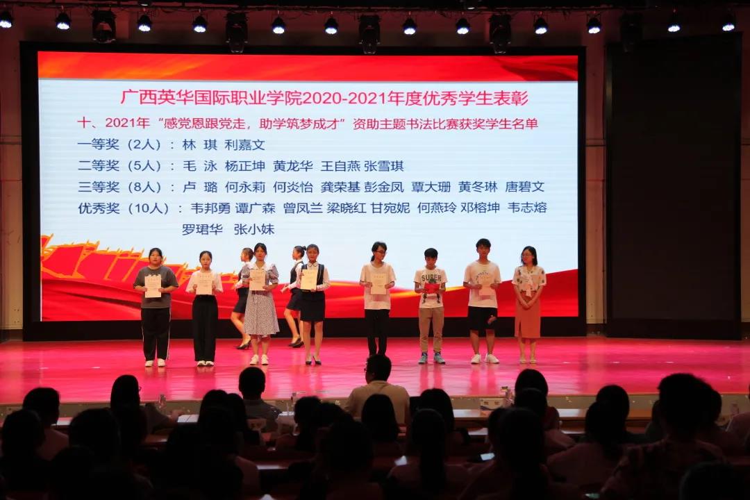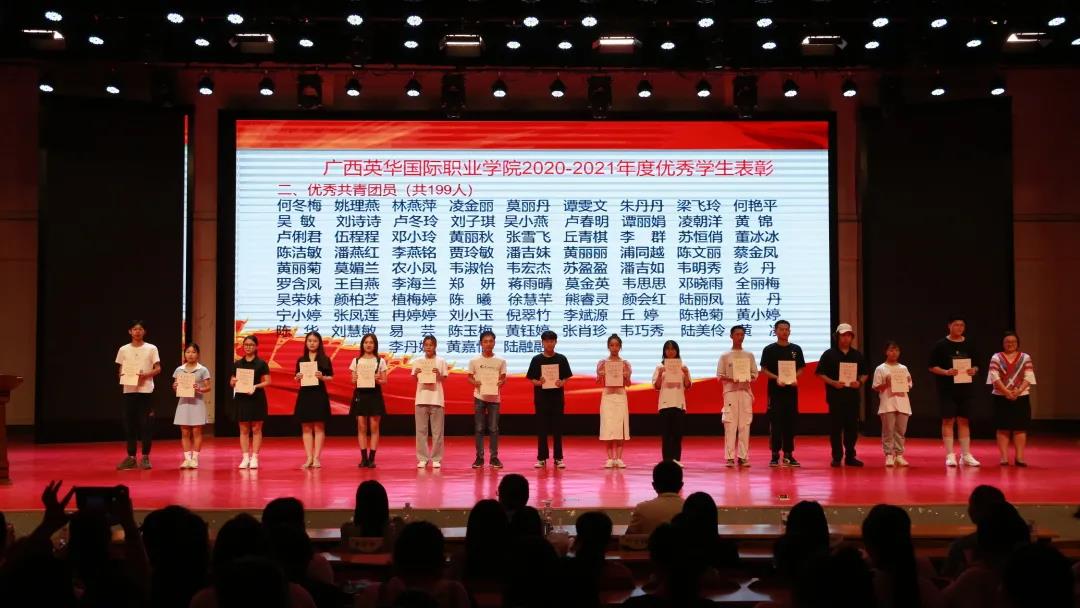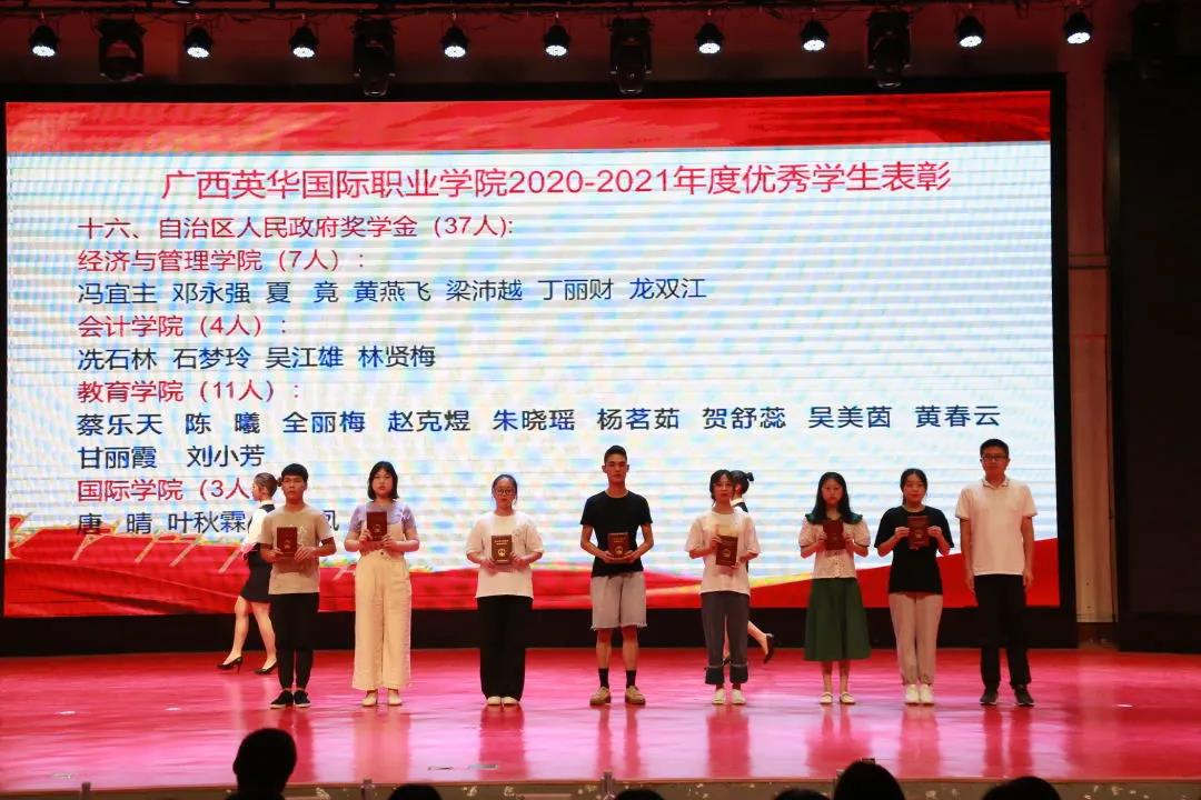 表彰大会在雄壮的国歌声中开始。校长助理宋博致辞,优秀学生代表谢丽发言,各学院院长、书记、学生处副处长、团委书记分别为获得2020至2021年度先进个人和集体颁奖。