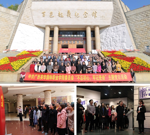 为纪念百色起义90周年,12月7日-8日,学校中层以上领导干部及全体教职工党员前往百色开展“不忘初心、牢记使命”主题教育之主题党日活动,一行人先后前往百色起义纪念馆、百色起义纪念碑缅怀革命先烈的丰功伟绩,学习革命先烈坚定的理想信念,从百色起义精神中汲取力量,激发全体党员在今后工作中要继续发挥先锋模范作用,时刻保持一名共产党员的先进性。