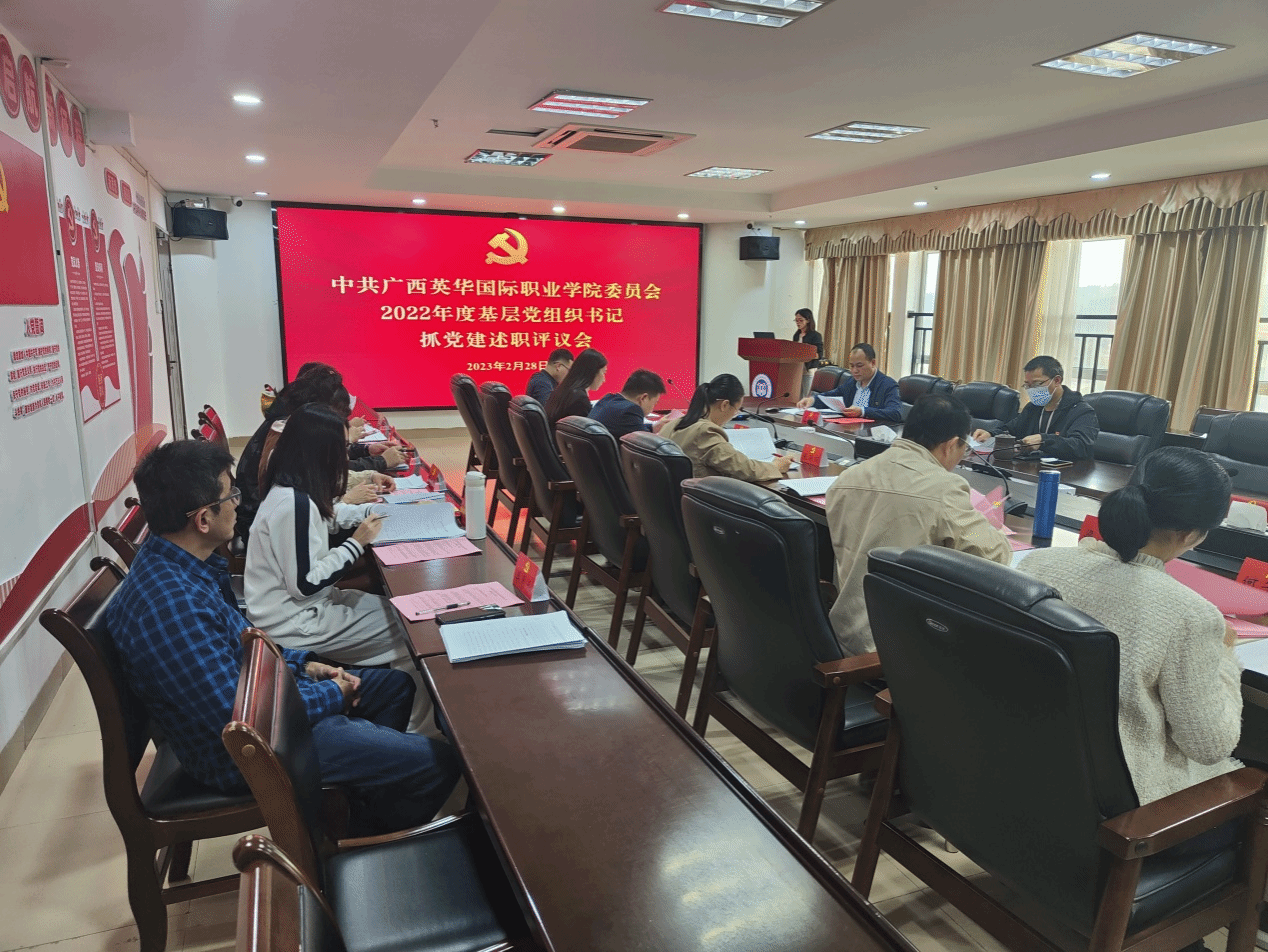 按照市委教育工委统一部署和学校党委工作安排,2月28日,广西英华国际职业学院召开2022年度基层党组织书记抓基层党建工作述职评议会。学校党委领导班子成员、各基层党组织书记和党务干部代表参加会议。学校党委委员蓝振师主持会议。