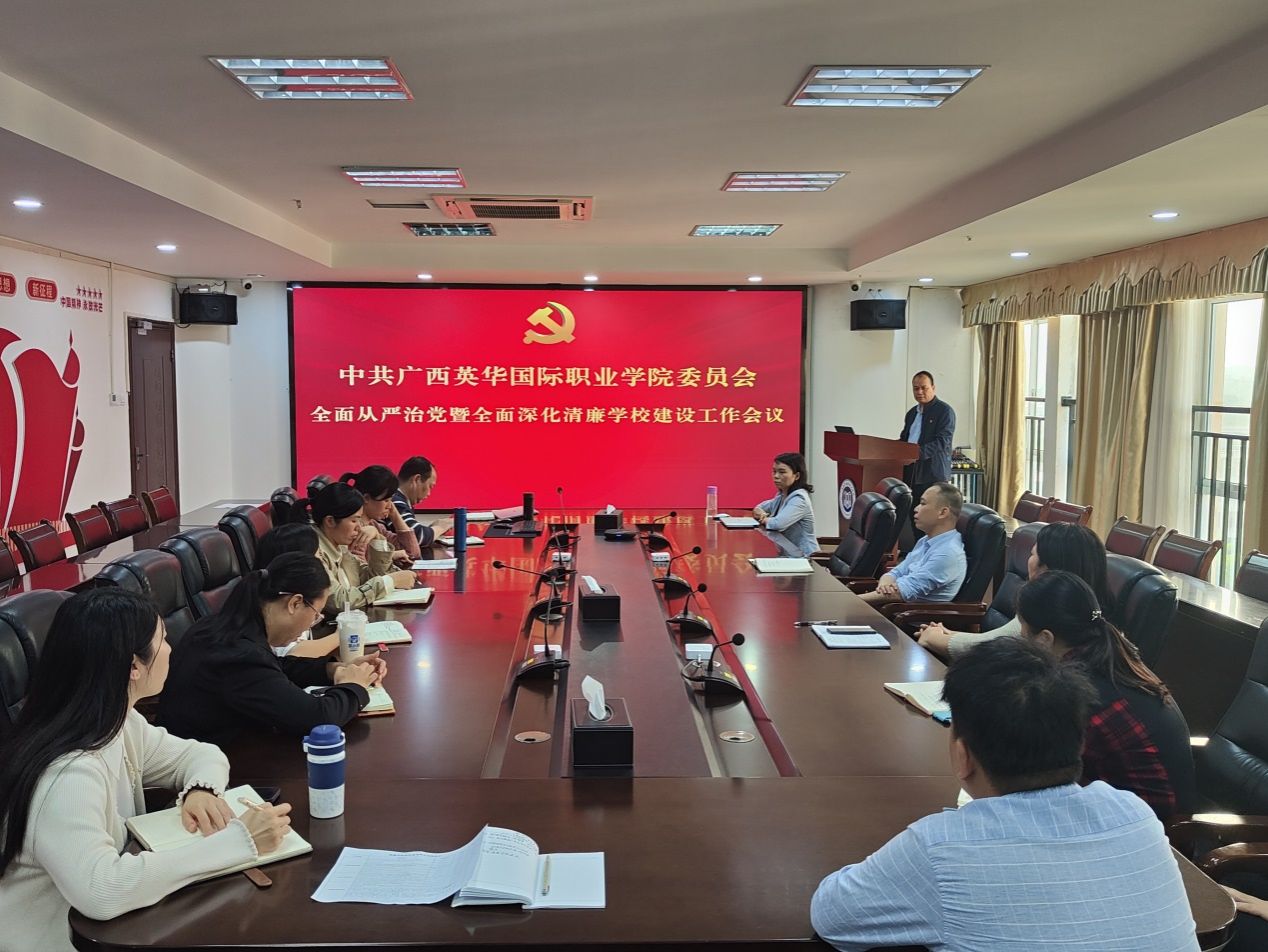 3月3日下午,学校全面从严治党暨全面深化清廉学校建设工作会议在力行楼七楼会议室召开,深入学习贯彻党的二十大精神和二十届中央纪委二次全会精神、教育部2023年教育系统全面从严治党工作视频会议精神、自治区纪委十二届三次全会精神、清廉广西建设领导小组办公室2023年第1次全体会议精神以及2023年全区教育系统全面从严治党暨全面深化清廉学校建设工作部署视频会部署要求,安排部署学校2023年全面从严治党重点任务和清廉学校建设工作,签订全面从严治党责任书。纪委书记钟伟出席并讲话。党委委员蓝振师主持会议,学校纪委委员、委各部门负责人、各党总支书记参加会议。
