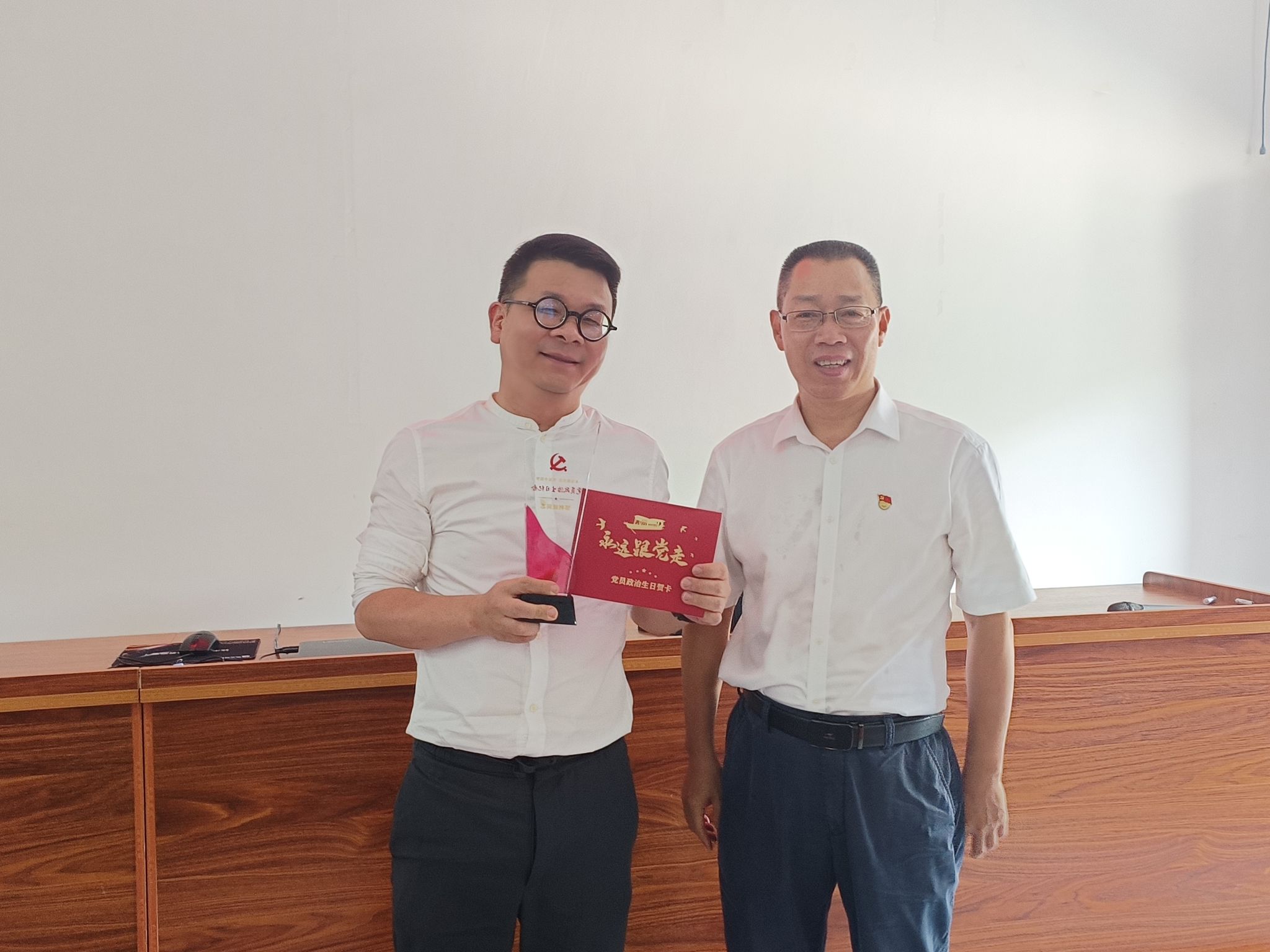教学活动结束后,黄家良书记给1991年7月1日入党的邹利斌同志颁发政治生日贺卡。