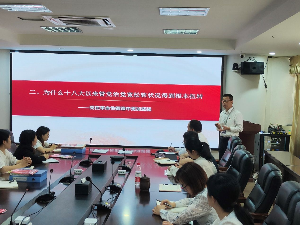 学校党委委员、党委办公室主任蓝振师传达了二十届中央纪委三次全会、2024年全区教育系统全面从严治党暨全面深化清廉学校建设工作部署视频会精神。