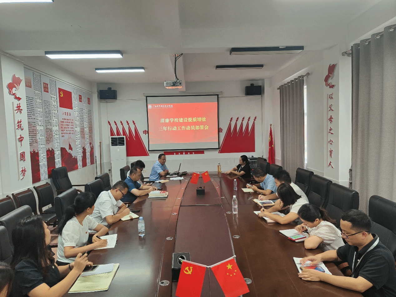 会上,党委办公室主任蓝振师宣读《广西英华国际职业学院推进清廉学校建设提质增效三年行动方案(2024—2026年)》并进行工作动员和部署。
