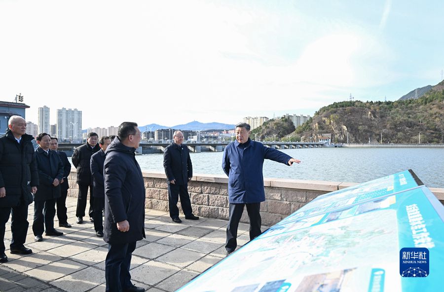 11月10日,中共中央总书记、国家主席、中央军委主席习近平在北京、河北考察灾后恢复重建工作。这是10日上午,习近平在北京门头沟永定河三家店引水枢纽考察。新华社记者 燕雁 摄