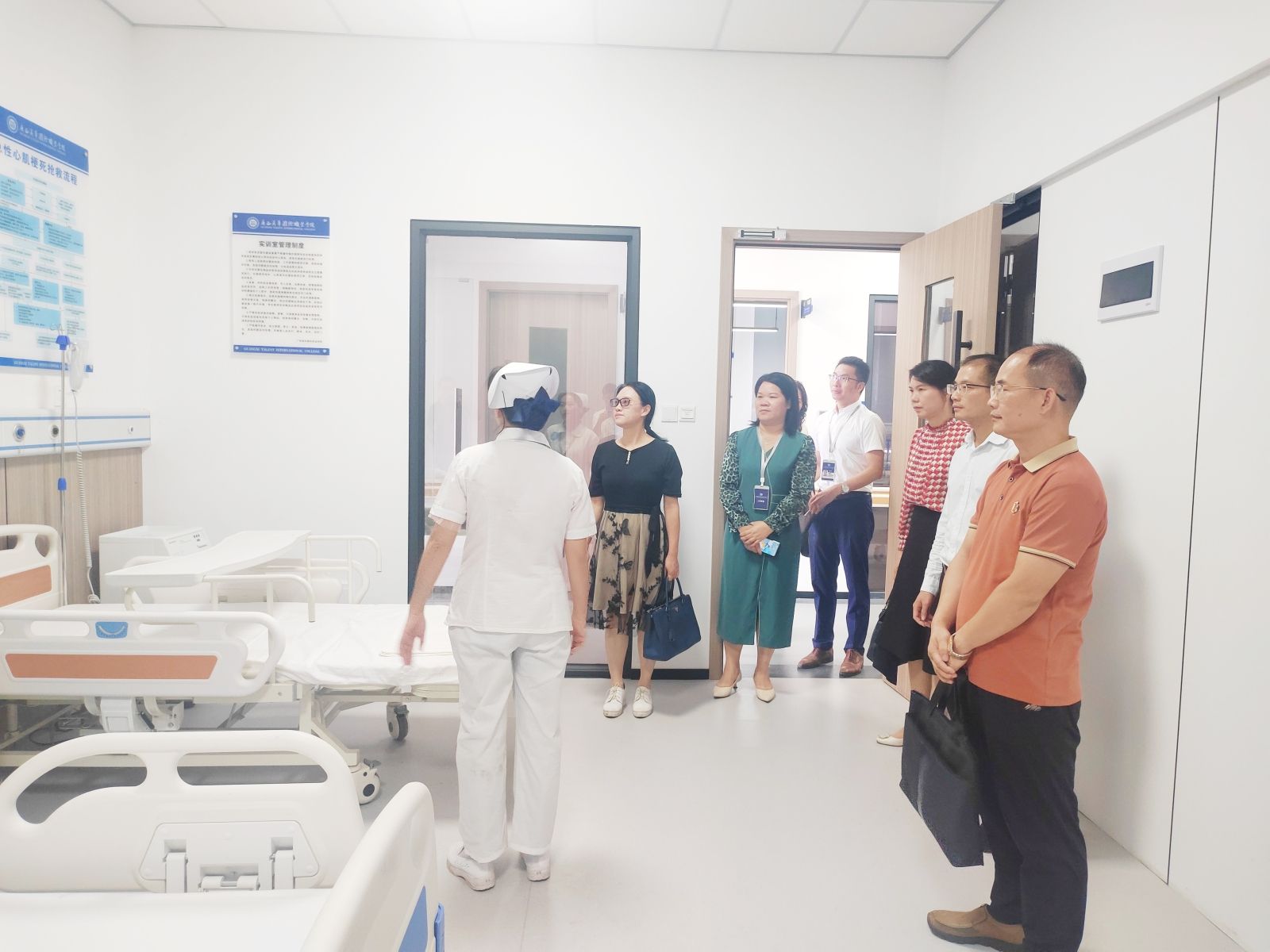 会后,李春燕一行实地考察了我校大健康实训室、继续教育学院办公室等招生场所,对学校的校园文化、校园环境、工作环境等进行深入调研。