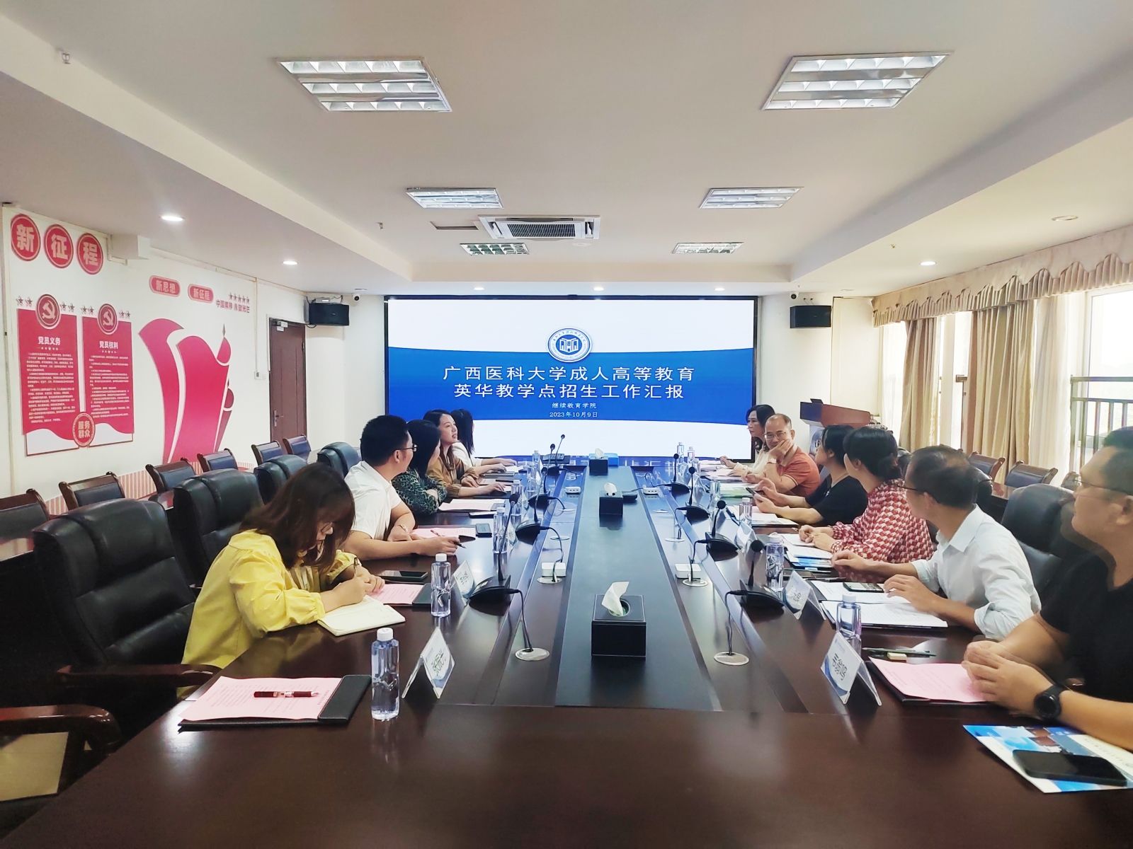 李春燕介绍了广西医科大学继续教育学院关于高等学历继续教育招生管理相关工作情况,对我校前期的招生宣传工作给予了高度认可,赞扬我校招生工作推进扎实、宣传手段多元化,成效显著,在没有毕业生的情况下,取得了显著的招生效果,对我校成人高等学历继续教育充满信心。