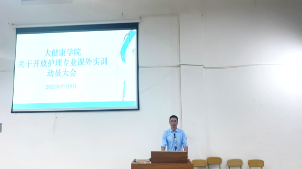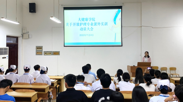 为了同学们更好地巩固课堂内容、提高护理基础操作技术,大健康学院11月4日在实验楼501教室召开关于开放护理专业课外实训的动员大会。副院长谢绍辉、副院长段唐文、团总支书记谢泽昆、专任教师陆远英、专任教师麦琪,护理协会全体成员及各班班委代表参加了本次动员大会。