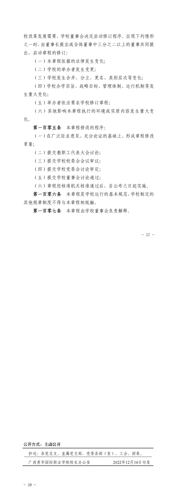 广英职院办〔2022〕50号关于印发《广西英华国际职业学院章程(2022年核准稿)》的通知