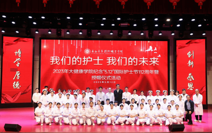 为纪念“5.12”国际护士节,弘扬南丁格尔精神,激励我院师生在新时代中砥砺前行,提高护理学子的职业素养。近日,大健康学院纪念“5.12”国际护士节112周年暨授帽仪式活动在图书馆报告厅举行。监事会主席钟伟、常务副校长柴新卫、校长助理张生、大健康学院副院长谢绍辉、大健康学院副院长段唐文出席此次活动。