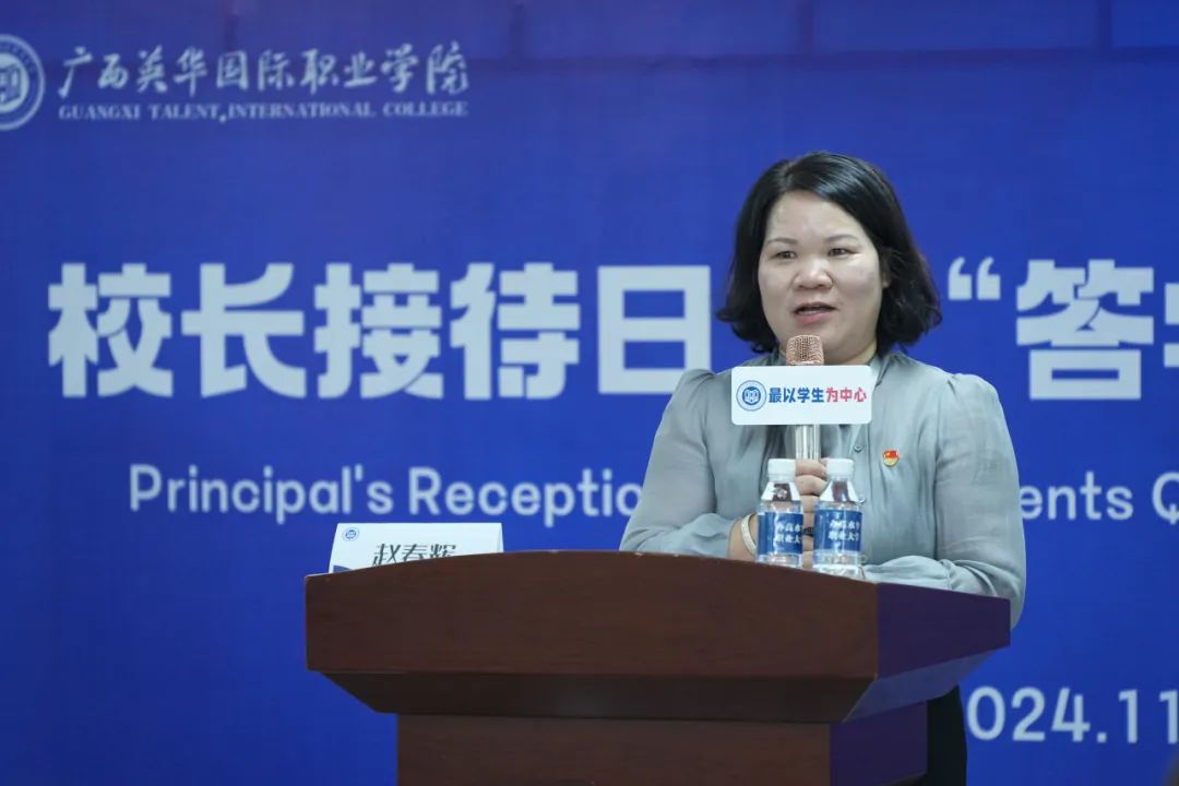 广西英华国际职业学院执行校长赵春辉,于百忙之中亲自坐镇“发布会”现场,认真聆听、耐心回答,她表示:“这些反馈对学校的发展至关重要,我们将立即行动,尽快制定出切实可行的改进措施,回应大家的期待!”掷地有声的承诺,是学校对学生主体地位的坚守,是教育初心的生动体现。