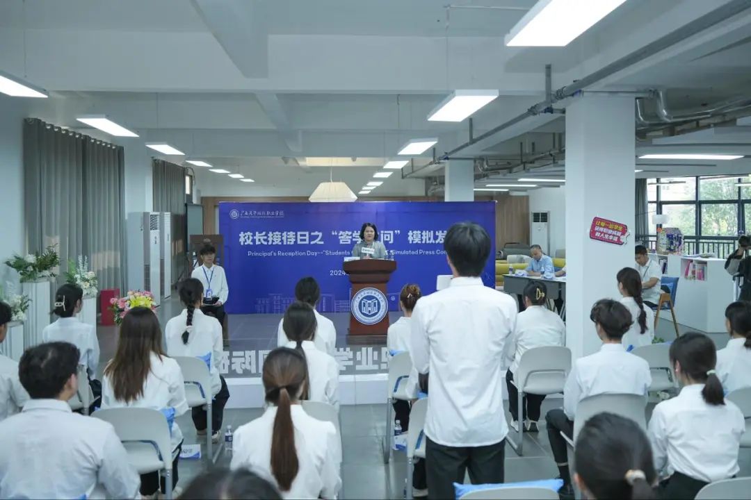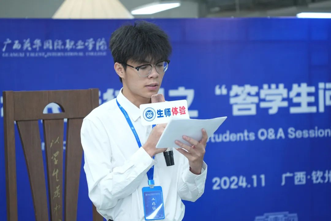 ▲广西英华国际职业学院执行校长赵春辉作为“发言人”,耐心答学生问
