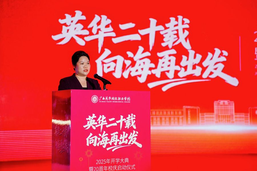 她提到,二十年来,广西英华始终紧跟国家职业教育改革的步伐,牢记“博学、厚德、创新、感恩”的校训,坚持“以父母之心育人,帮助学生成就梦想”的办学理念,为社会培养了一批又一批有技能、高素质的人才。
