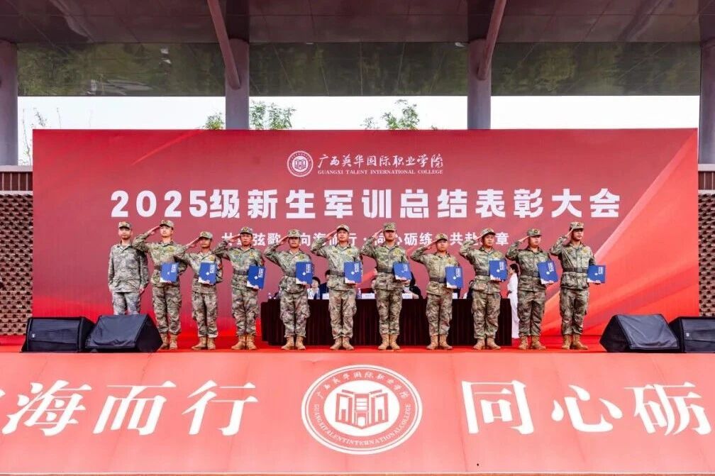 愿2025级全体新同学,将军训中收获的勇气、毅力与担当,融入接下来的每一堂课、每一次实训,在广西英华国际职业学院这片依山傍海、面向未来的热土上,脚踏实地、勇于追梦,与风华正茂的英华一起,共同谱写下一个二十年的崭新篇章!
