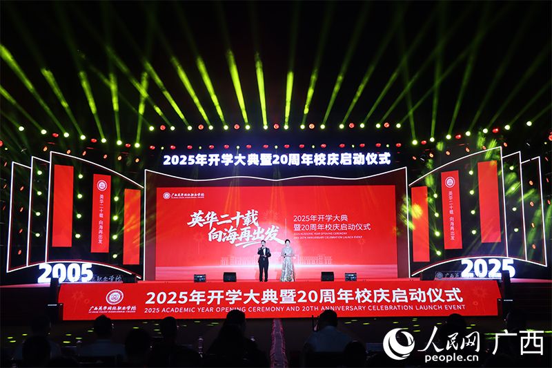 人民网钦州10月11日电 (冯肖慧)二十载砥砺奋进,二十载春华秋实。10月10日晚,广西英华国际职业学院举行2025年开学大典暨20周年校庆启动仪式。此次活动以“英华二十载 向海再出发”为主题,共分薪火传承、奋发筑梦、扬帆启航三个篇章,展示师生团结创新、锐意进取、蓬勃向上的精神风貌。