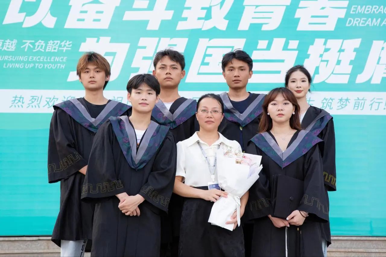 ▲2024年毕业季,毕业学生为陈永老师献花并合影留念。