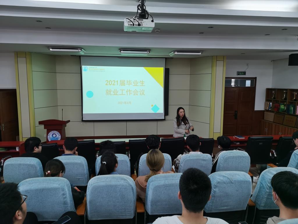 会上,王卉卉老师简要介绍了当前2021届毕业生就业情况、就业形势和面临的问题,她指出,就业是大学生走出校园踏入社会的第一步,是实现经济独立、生活独立的第一步,是职业发展的新起点。她指出,毕业生要做好求职规划,明确自身条件和自我发展方向,做到就业有方向,求职有目标。她鼓励大家要敢于迈出求职的第一步,多听、多看、多了解,在宣讲会、招聘会中深入了解行业发展和用人单位需求,积极投简历,珍惜每一次面试机会,相信自己在诸多的岗位机会中一定能找到心仪的工作。