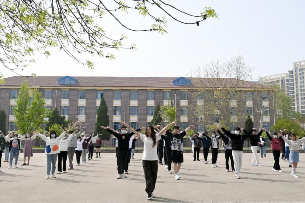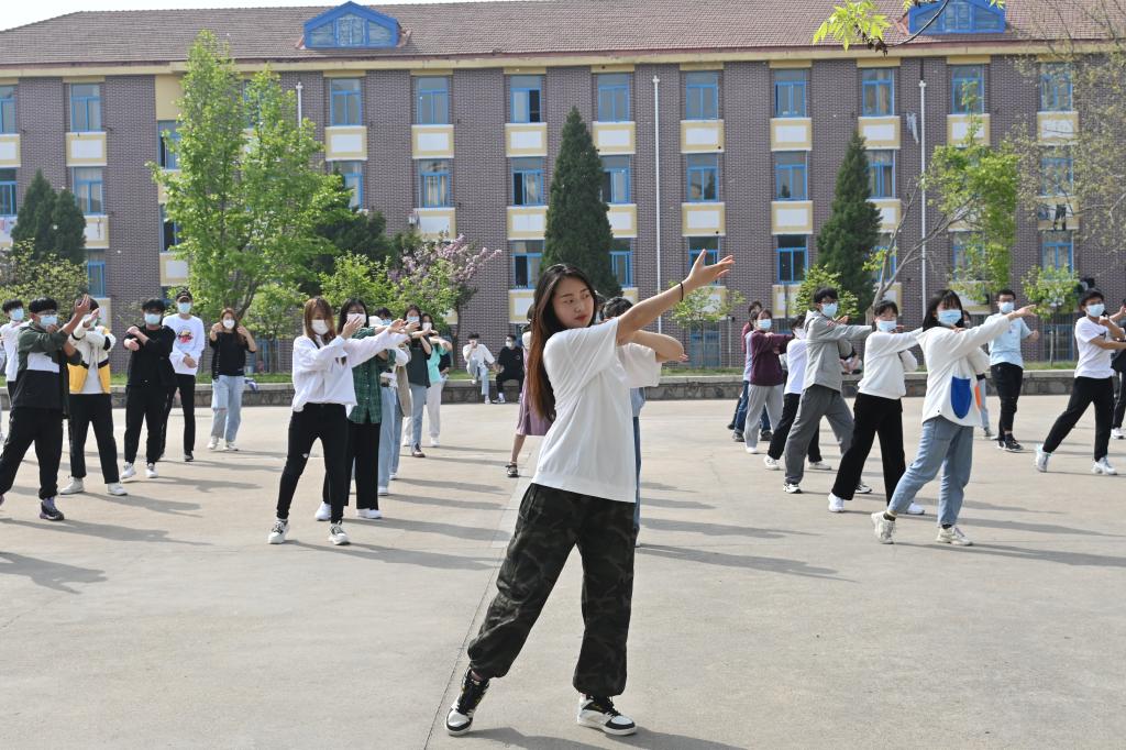 在学院班赛中脱颖而出的队员们,伴随着音乐旋律舞动,动作整齐划一,舞姿轻盈优美,展现出前期训练的良好成效,也展现了我院学子积极向上、从容自信的良好精神风貌。