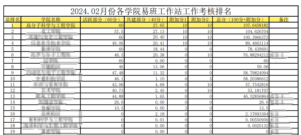 2月,高分子科学与工程学院易班双指数排名位列全校第一。