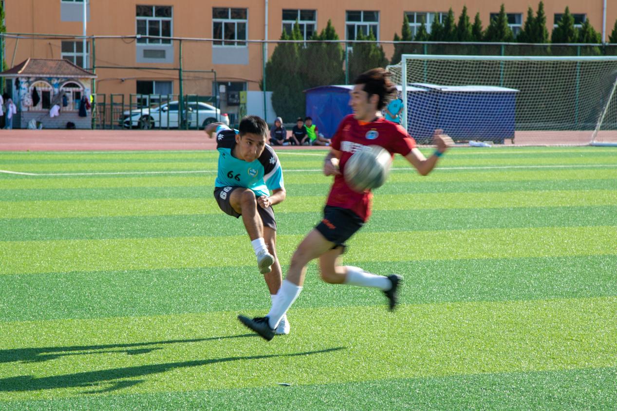 比赛伊始,双方球员迅速进入状态。高分子学院球员们意气风发,在场上积极拼抢,每一次传球都精准果断,频频向材料学院防线发起进攻。上半场,高分子学院阿布杜萨拉木率先通过角球破门,拿下本场比赛第一个进球。