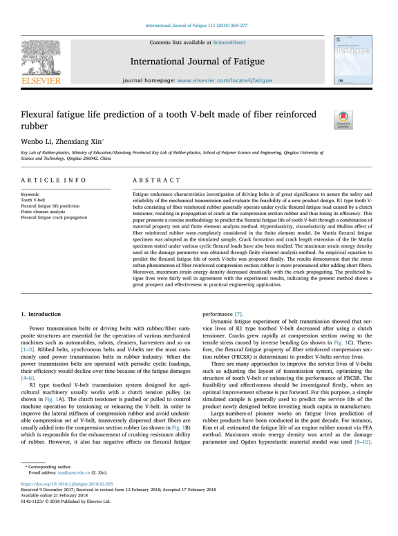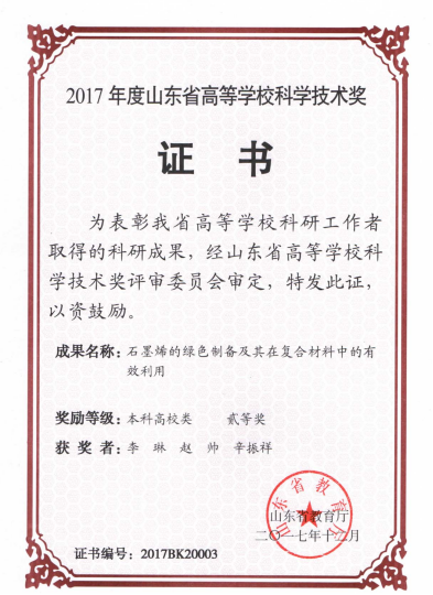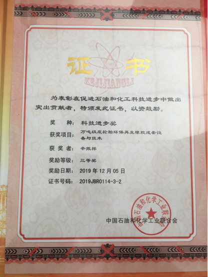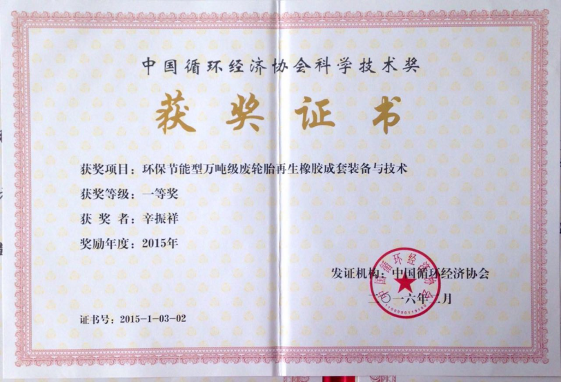 1.成果1:(简要介绍成果名称、完成人、内容、获奖(出版、发表)和应用成效等情况,限200字以内,并在结尾处标注“证明材料”页码,下同) 环保节能型万吨级废轮胎再生橡胶成套装备与技术,辛振祥等,中国循环经济协会科学技术奖一等奖,2016.02,证明材料P5; 2.成果2:石墨烯的绿色制备及其在复合材料中的应用,李琳等,山东省高等学校科学技术奖二等奖,2017,证明材料P6; 3.成果3:橡胶循环利用技术丛书,辛振祥等,中国石油和化学工业优秀出版物奖.图书奖一等奖, 2017,证明材料P7; 4.成果4:万吨级废轮胎环保再生橡胶成套设备及技术,辛振祥等,中国石油和化学工业联合会科技进步奖三等奖, 2019,证明材料P8; 5.成果5:Investigation of dynamic heat generation and transfer behavior and energy dissipation for nonlinear synchronous belt transmission,辛振祥、陈琪等,Applied Thermal Engineering 144 (2018) 457–468,证明材料P9; 6.成果6:Flexural fatigue life prediction of a tooth V-belt made of fiber reinforced rubber,辛振祥等,International Journal of Fatigue 111 (2018) 269–277,证明材料P10; 7.成果7:一种高效再生助剂、制备方法及废丁基内胎的再生方法,卢娜、辛振祥等,ZL201610994012.X,授权公告日2019/4/9,证明材料P11; 8.成果8:一种废轮胎胶粉橡胶板及其制备方法,沈梅等,ZL201510633586.X,授权公告日2017/11/24,证明材料P12; 9.成果9:一种芳纶浆粕与玄武岩短纤维定向增强的橡胶复合材料及其制备方法,辛振祥等,ZL201710914092.8,授权公告日2019/10/15,证明材料P13; 10.成果10:一种3D打印成型的同步带,辛振祥等,ZL201820855539.9,授权公告日2019/2/1,证明材料P14; |