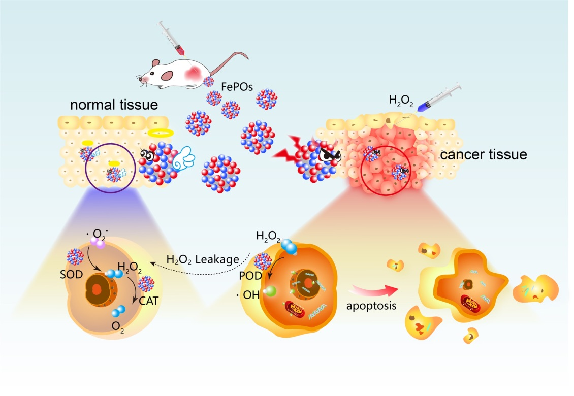 近日,我校材料学院陈克正教授、王玮教授与中国医学科学院放射医学研究所刘鉴峰研究员(材料学院特聘教授)合作,在一区期刊Chemical Engineering Journal(影响因子10.652)发表标题为“Trienzyme-like Iron Phosphates-Based (FePOs) Nanozyme for Enhanced Anti-tumor Efficiency with Minimal Side Effects”的高水平论文,硕士生王中强和博士生李国梁为该论文的共同第一作者。