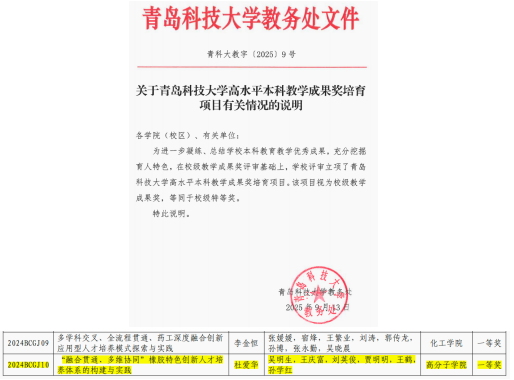 省级教学成果奖-高分子材料与工程专业拔尖创新人才培养模式的探索与实践