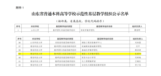 山东省普通本科高等学校示范性基层教学组织-橡胶工艺学教学团队