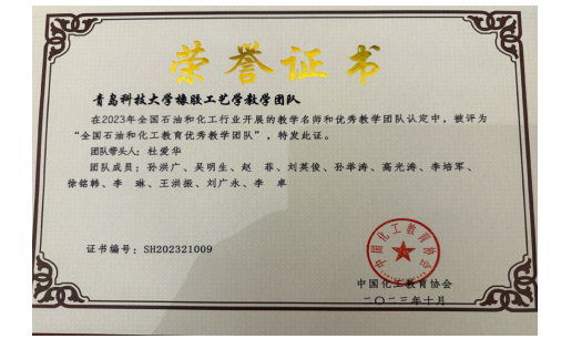 全国石油和化工教育优秀教学团队-杜爱华教授负责的橡胶工艺学教学团队