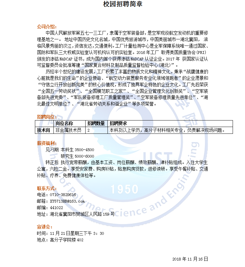 中国人民解放军第五七一三工厂-2019高分子招聘之三十六