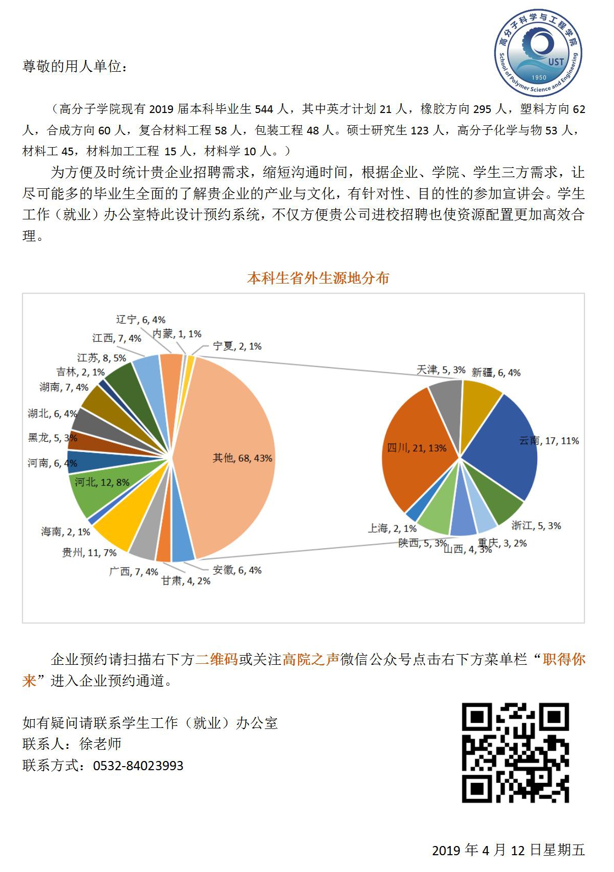 2019届高分子学院企业招聘宣讲会预约通道