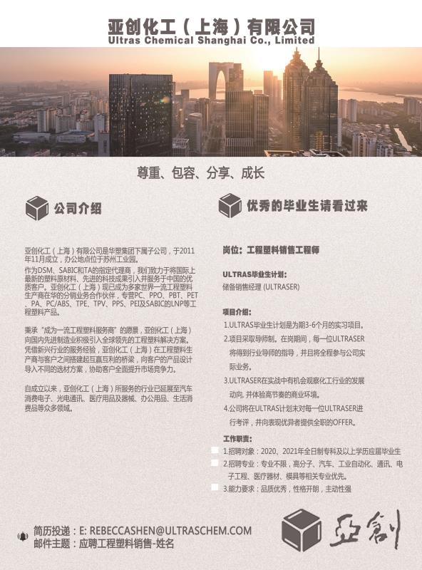 投递简历邮箱:rebeccashen@ultraschem.com