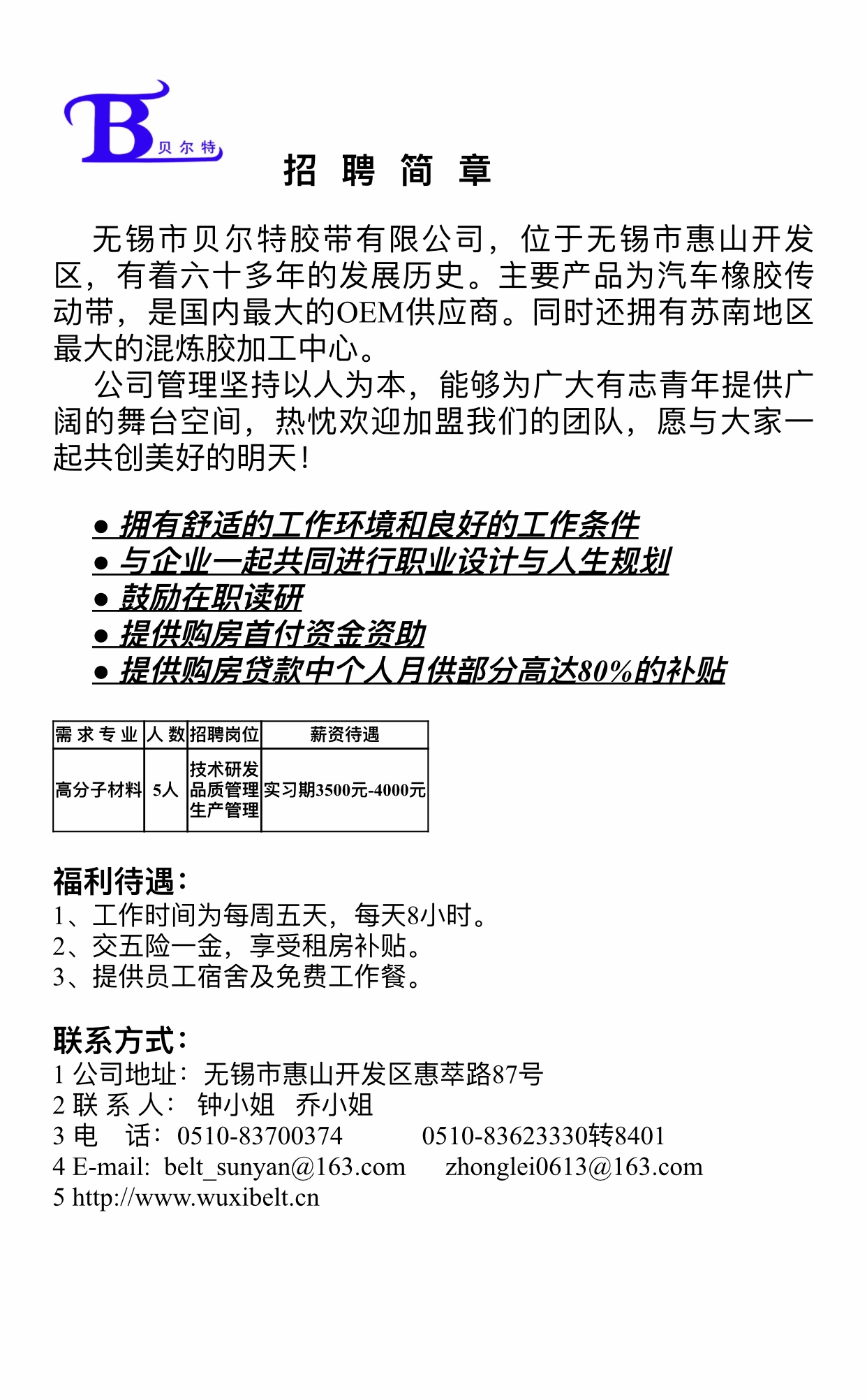 无锡市贝尔特胶带有限公司-2020高分子招聘之六十二
