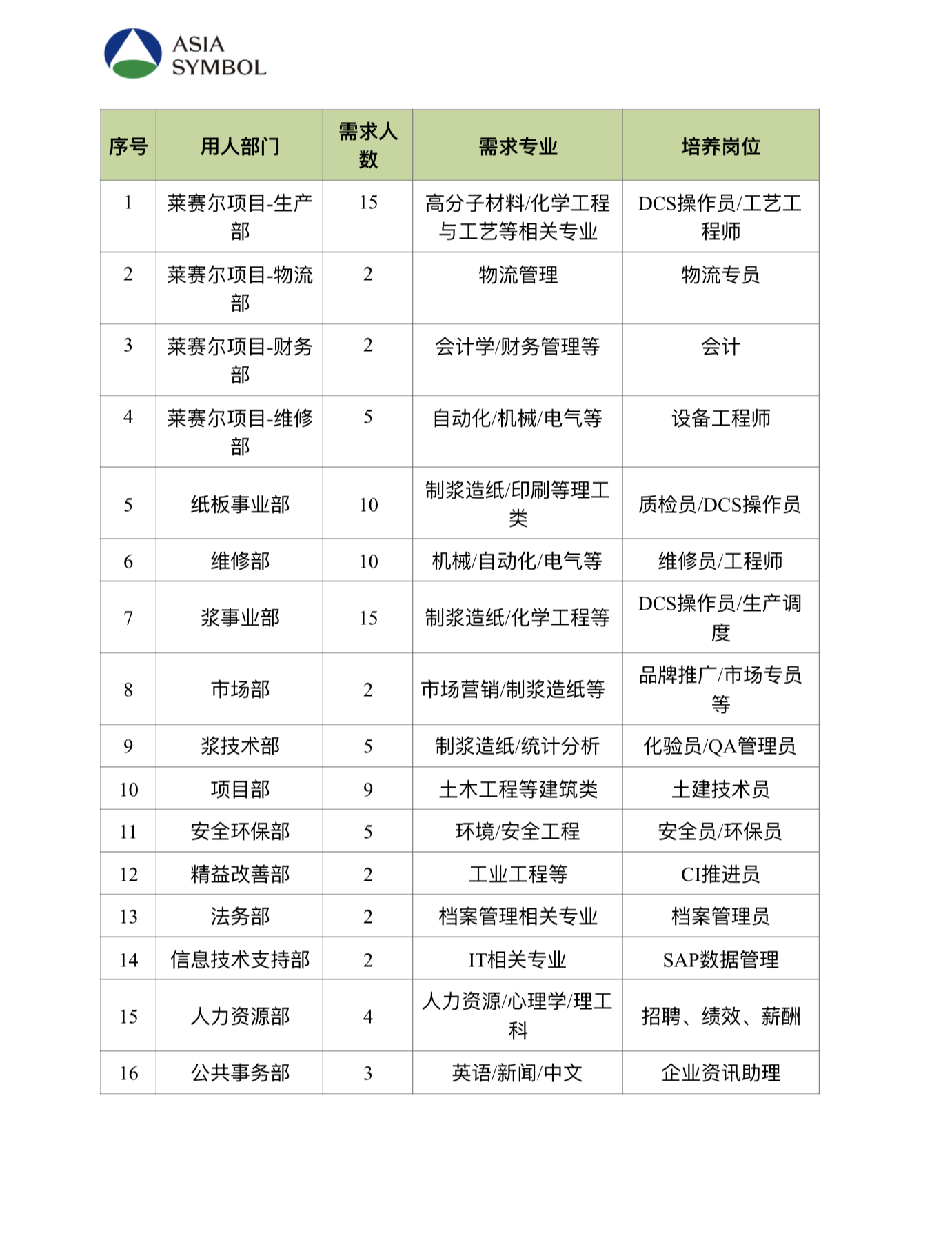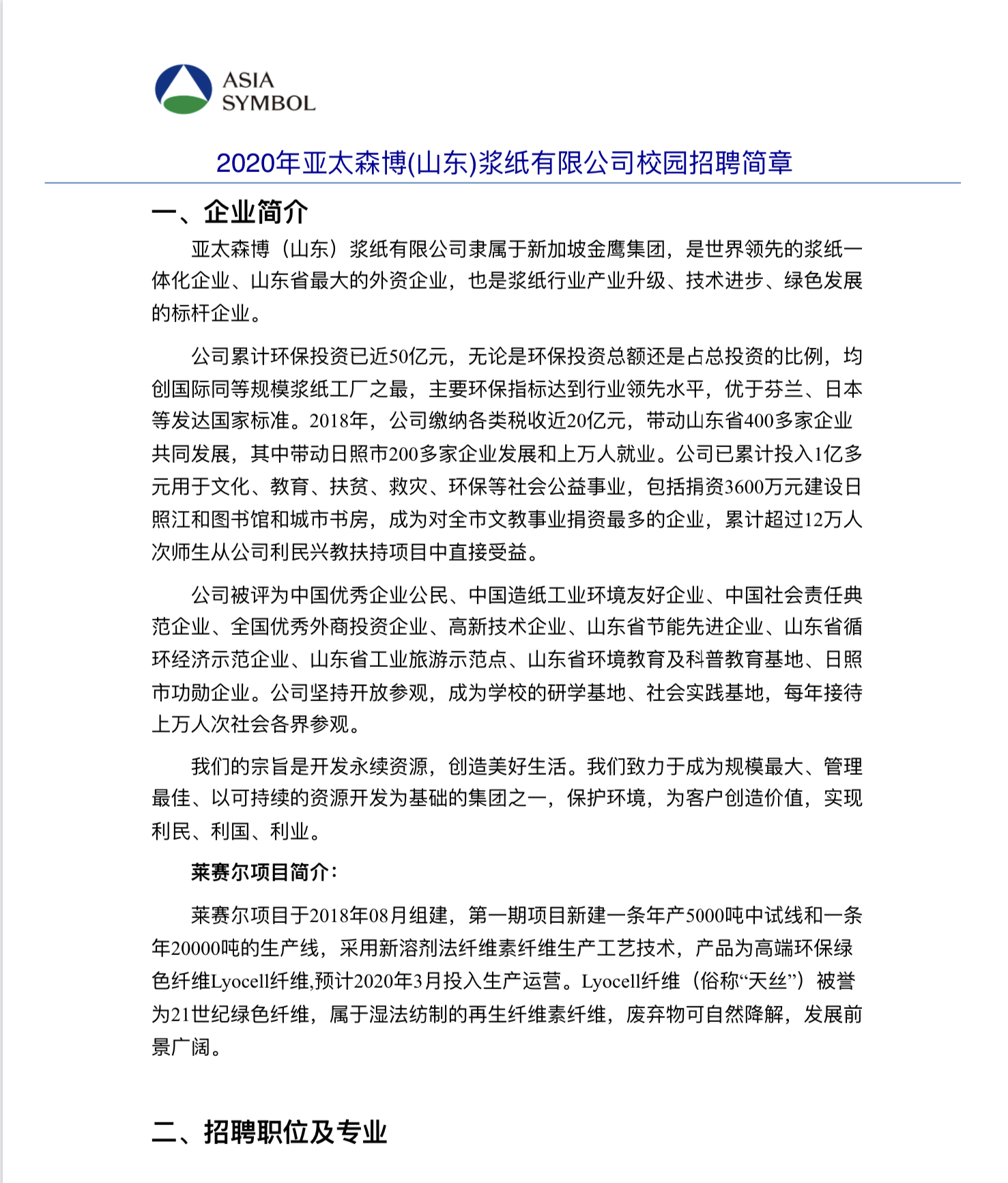 亚太森博(山东)浆纸有限公司-2020高分子招聘之一百六十四