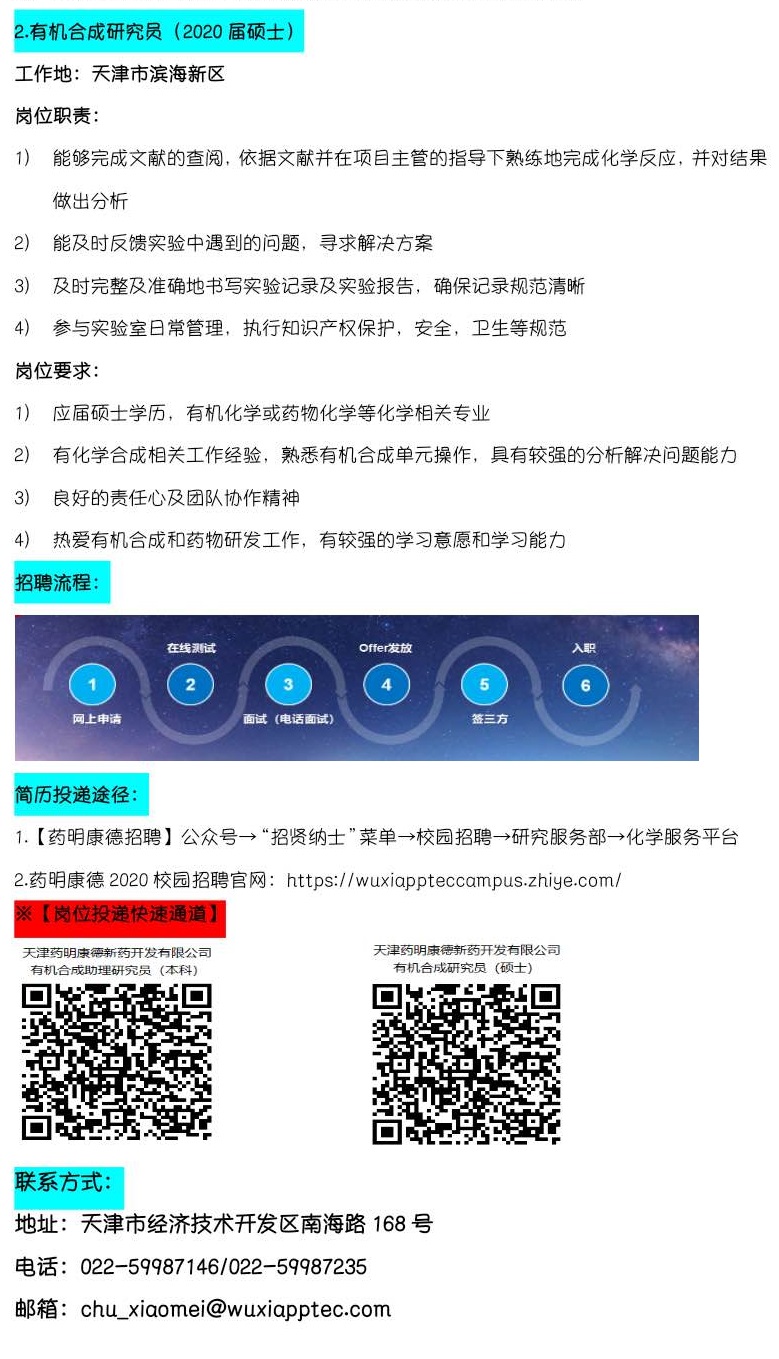 天津药明康德新药开发有限公司-2020高分子招聘之二百一十五