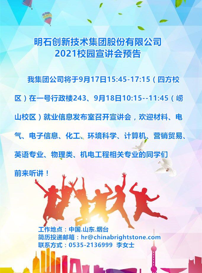 【就业信息】明石创新技术集团股份有限公司招聘简章