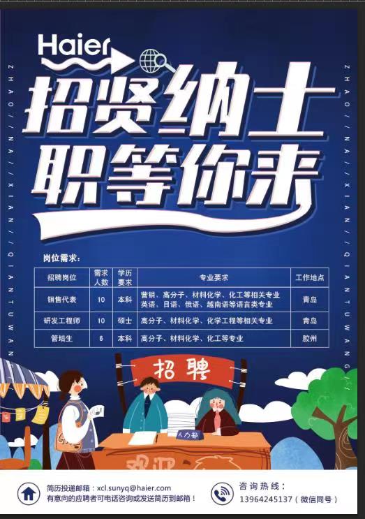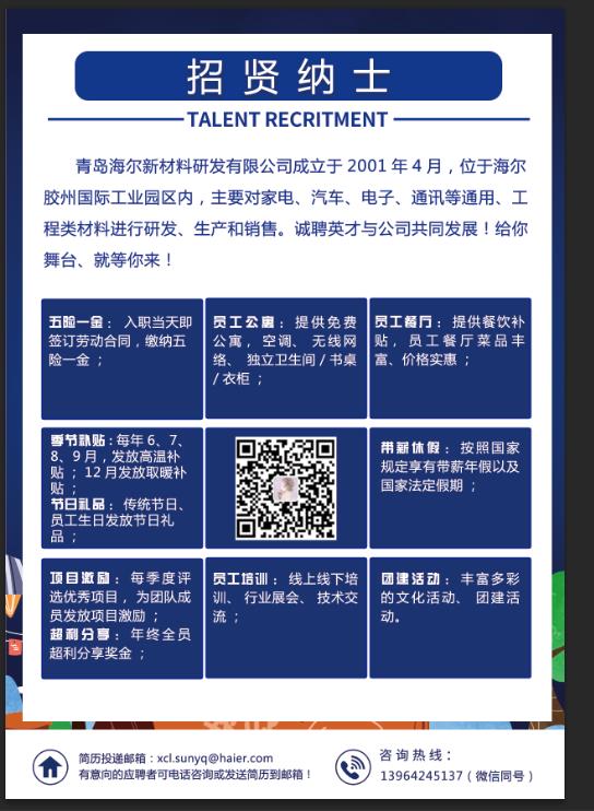 【就业信息】青岛海尔新材料研发有限公司招聘简章