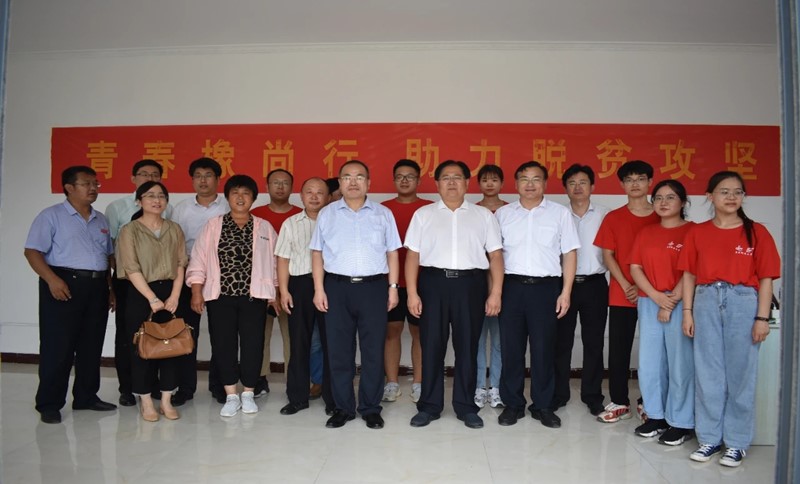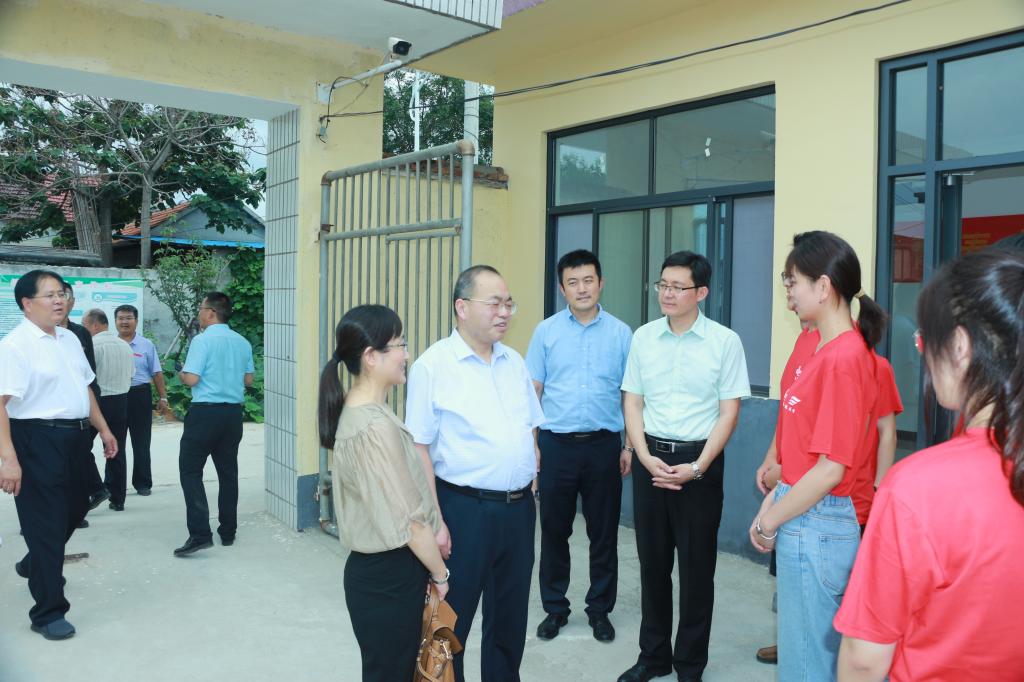 8月5日下午,学校党委常委、副校长丁林一行到蒙阴县坦埠镇“第一书记”帮包村走访慰问正在开展“三下乡”社会实践服务的高分子学院学生。蒙阴县委副书记孔繁润、团县委书记常兵、坦埠镇党委书记刘德柱,学校党委宣传部、学生处、团委、校友办及相关学院负责人陪同走访。