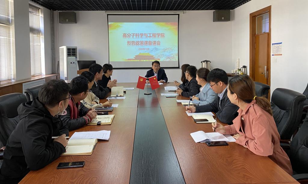 《形势与政策》课是落实立德树人根本任务的主干渠道和核心课程,是对学生进行形势与政策教育的主渠道、主阵地,是每个学生的必修课。为了更好地完成2020-2021学年第一学期的《形势与政策》课教学任务,更好地提升大学生在思政课的获得感和实效性,10月23日,高分子学院召开《形势与政策》课集体备课会。全体学工队伍老师参会,会议由学院党委书记孙洪广主持。