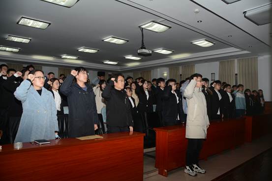 最后,全体新发展党员佩戴党员徽章,紧握右拳,面向党旗,以饱满的精神状态、洪亮的声音庄严宣誓,表明了自己争做合格党员、为党的事业奋斗终身的坚定决心。