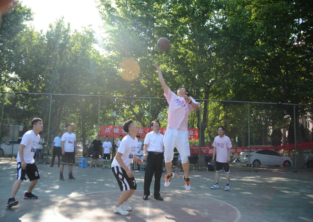 为积极响应学校体育综合改革的号召,培养德智体美劳全面发展的社会主义建设者和接班人,帮助师生在体育锻炼中增进联系、加深感情、增强体质、锤炼意志,6月21日下午,高分子学院在高分子楼前篮球场举办了“毕业不散场,精彩‘篮’不住”师生篮球赛,橡塑重点实验室副主任刘伟等10余名老师和毕业生代表参加了本次活动。学院党委书记孙洪广、浙江天铁实业股份有限公司总经理许银斌先生一同为比赛开球。