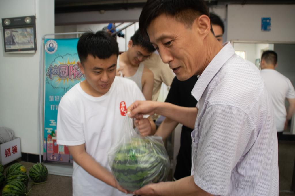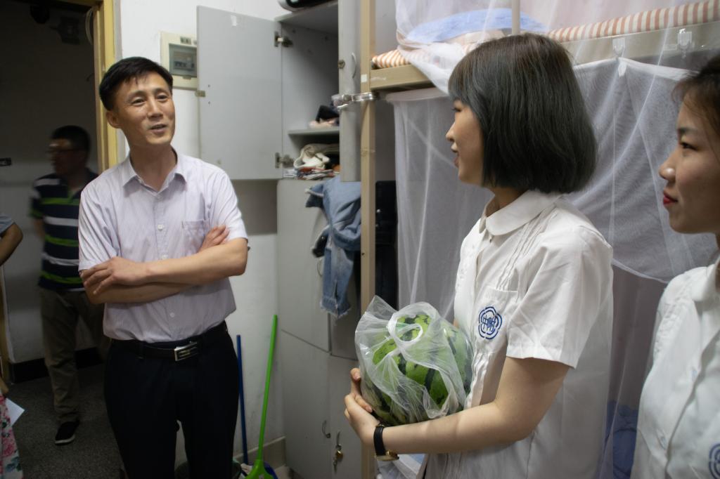 6月25日下午,高分子学院党政领导闫业海、尤亭亭、王庆富、孙举涛,团委书记贾明明,毕业班班主任、辅导员等一行分别到男生23号楼,女生慧园甲楼和研究生宿舍走访看望毕业生,并送去西瓜等慰问品。