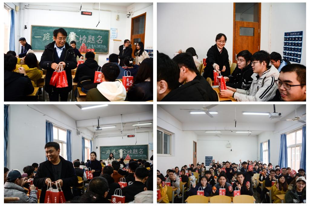 随后,学院领导和老师们为同学分发加油礼包。正在备考的大四学生阚子宁拿到加油礼包表示:“天气渐凉了,但心里却很温暖,感受到了学院的‘实力宠爱’。这次我们也是别人家的学校,我们会带着学院和老师们的祝福,乘风破浪,一路“橡尚”,不辜负学院和老师的厚望。