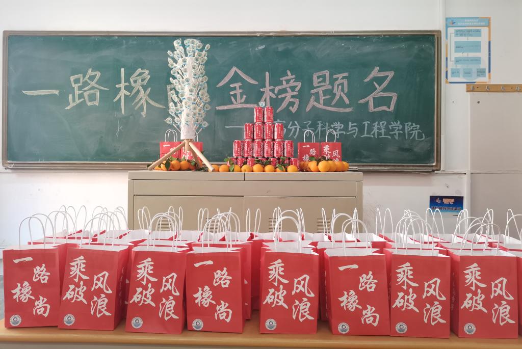 高分子学院团委多措并举,通过组织动员、典型示范、辅导帮扶等方式,多措并举助力考研学子。在宿舍楼开设考研自习室、为考研学习写一封信、制作考研视频《榜样的力量》等,为考研学子送去暖心的鼓励与支持。考研大礼包里有为同学们精心定制的橙子、专属可乐、棒棒糖,助力考研高材生“心想事‘橙’”、 一举夺‘罐’”、“‘棒’上有名”。