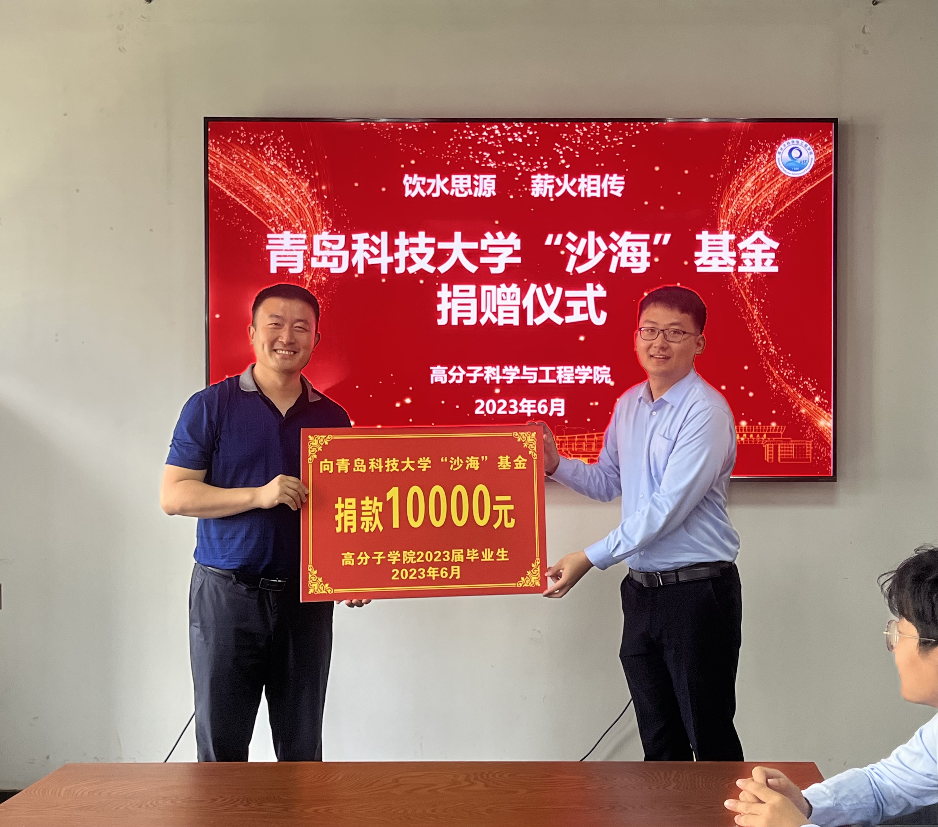 据悉,“沙海”基金源于我校每年向银川市兴庆区月牙湖回民中学派遣支教志愿者,开展为期一年的支教、扶贫工作。2014年青岛科技大学“沙海基金资助学校”揭牌,青科大与宁夏回族自治区银川市月牙湖回民中学和固原县城阳乡初级中学签订了合作协议。高分子学院团委将以此次捐赠活动为契机,继续坚持“立德树人”根本任务,擦亮“橡尚”文化品牌,引领同学们肩负时代重任,为中华民族伟大复兴而贡献力量。