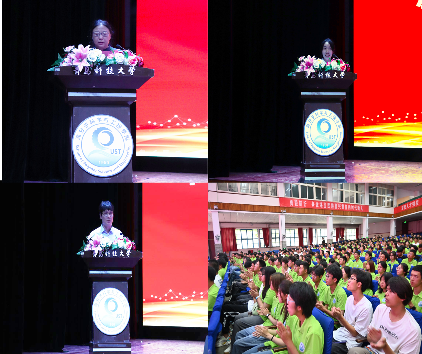 9月15日下午,高分子科学与工程学院2023级学生开学典礼在四方校区西礼堂举行。学院党委书记孙洪广、院长闫业海、副院长杜爱华、王庆富、各教研室主任、全体班主任、全体辅导员及2023级832名学生参加大会。大会由党委副书记兼副院长尤亭亭主持。