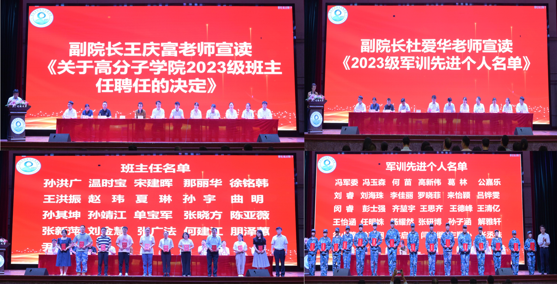 会上,学院领导为获得“军训先进个人”荣誉称号的同学颁发了证书,同时为2023级本科生班主任颁发了聘书。