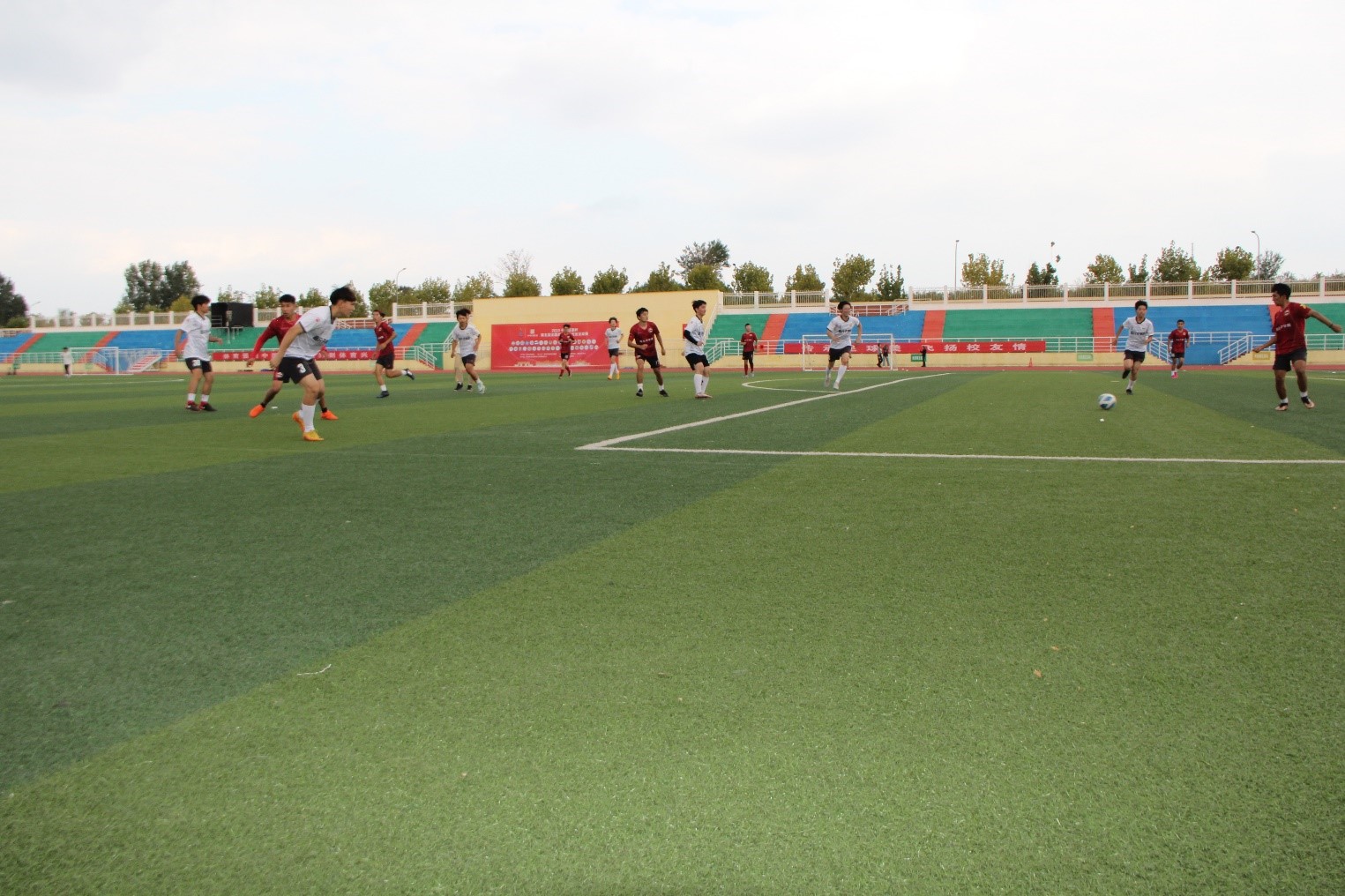 比赛过程中,同学们在绿茵场上尽情挥洒汗水,展现了精湛的球技、精彩的配合及高昂的斗志,彰显了“同心协力、团结进取”的橡尚精神。经过激烈的角逐,学院少数民族队以4:3的比分赢得本场友谊赛的胜利。
